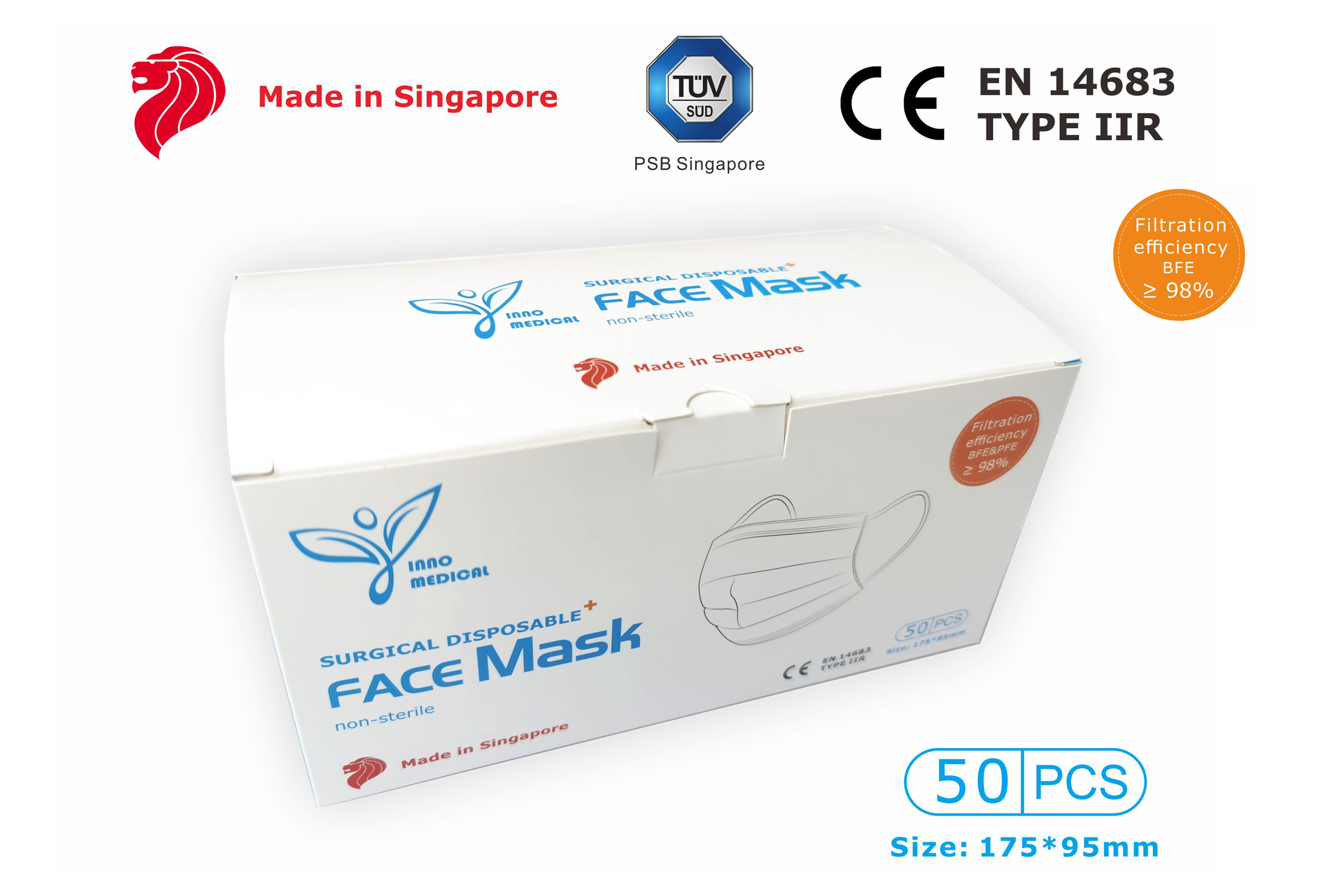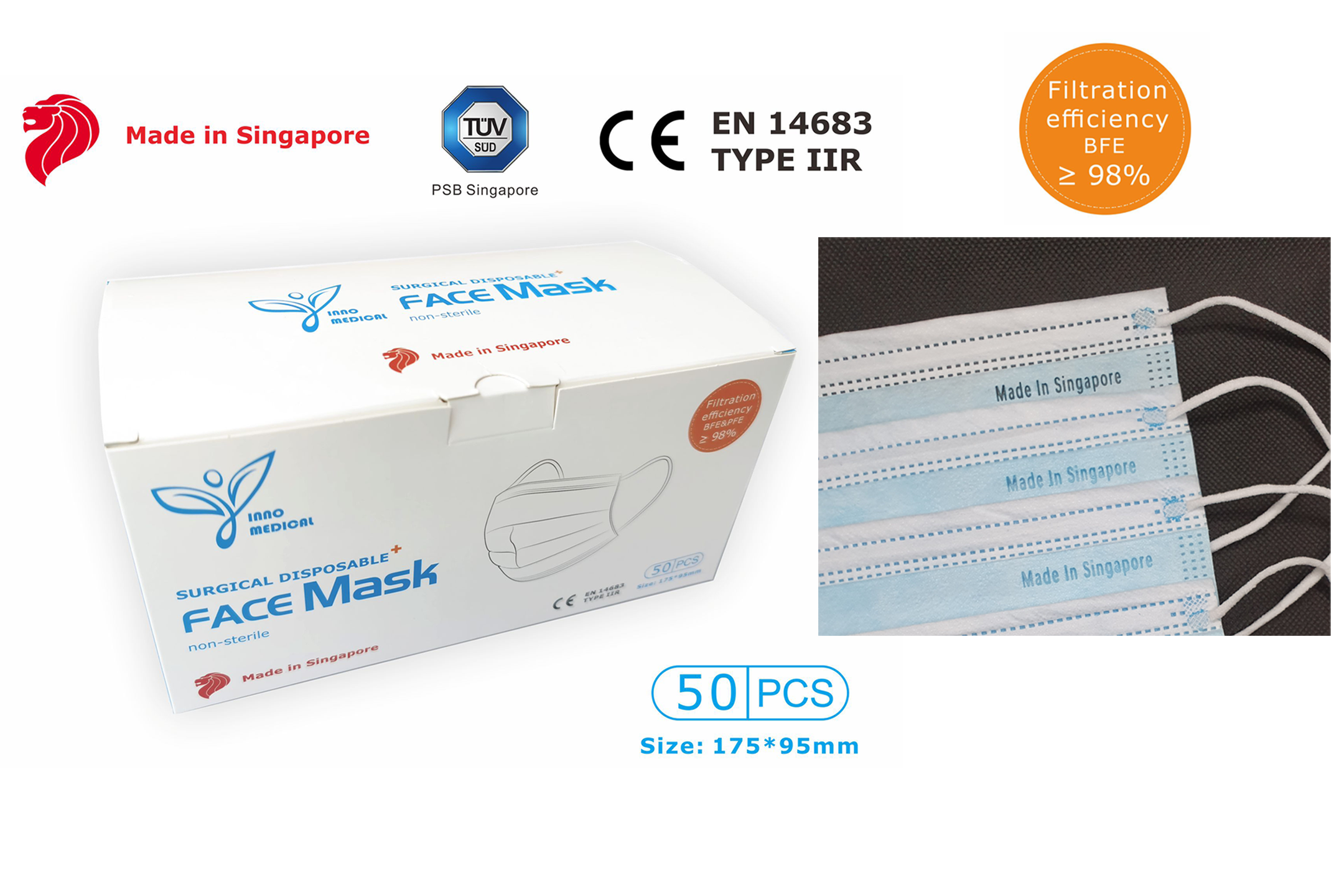 Made in Singapore HSA Licensed Disposable MEDICAL MASK, 50pcs/box