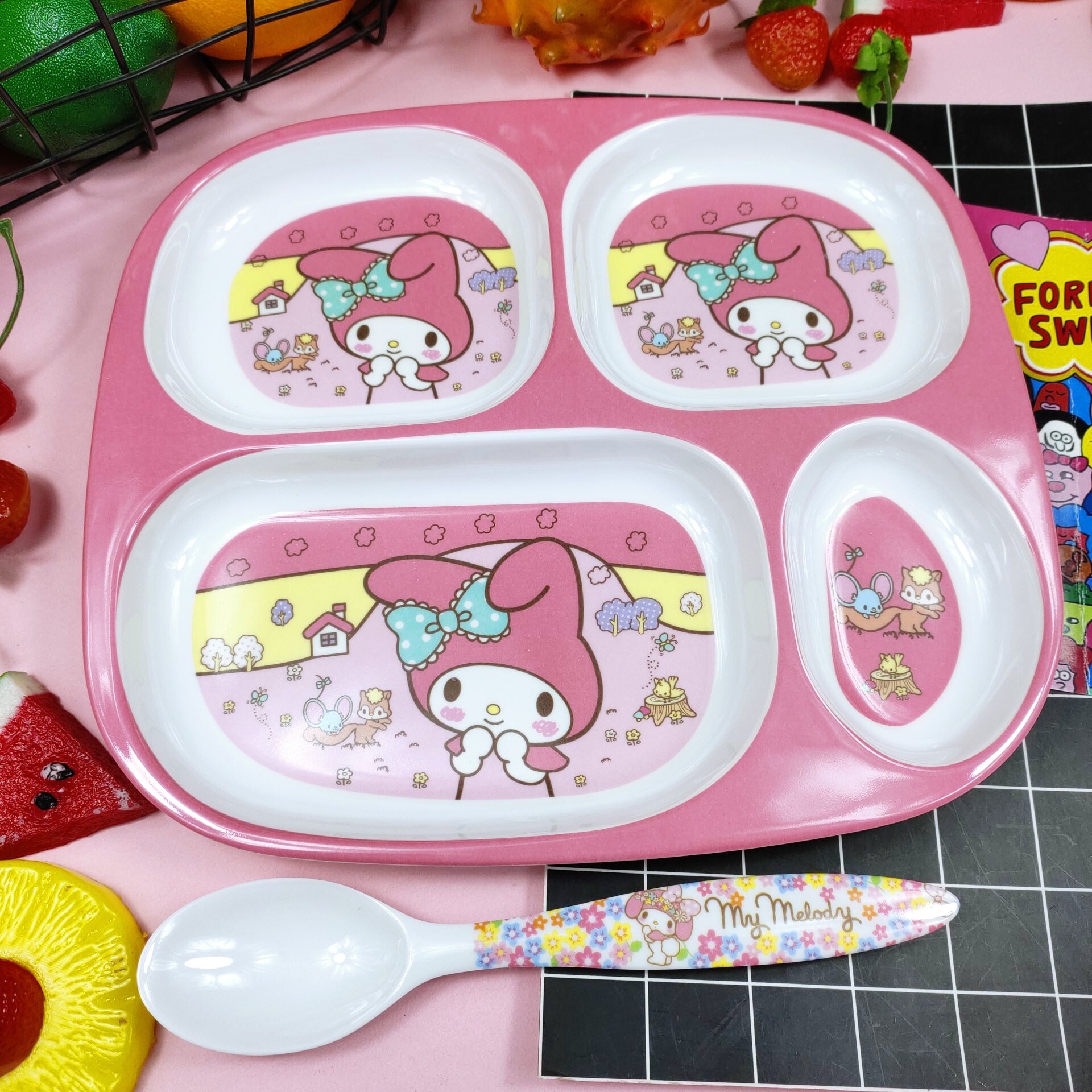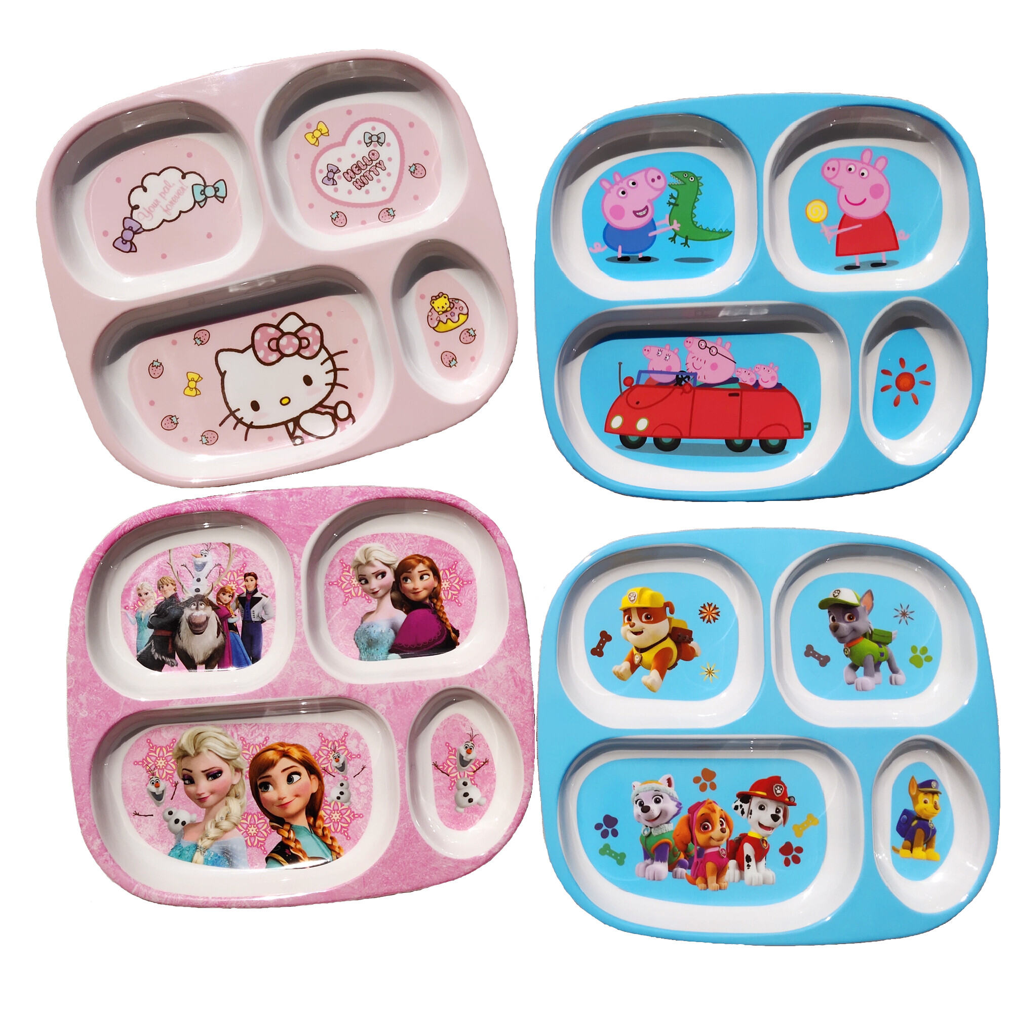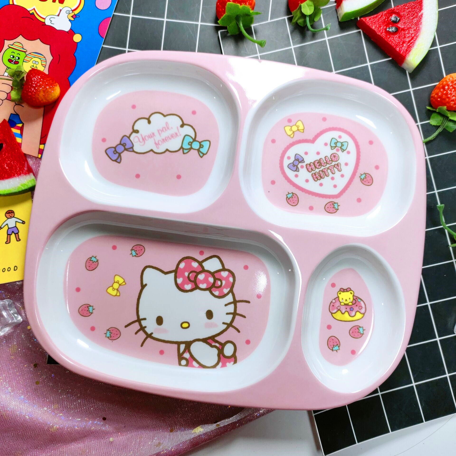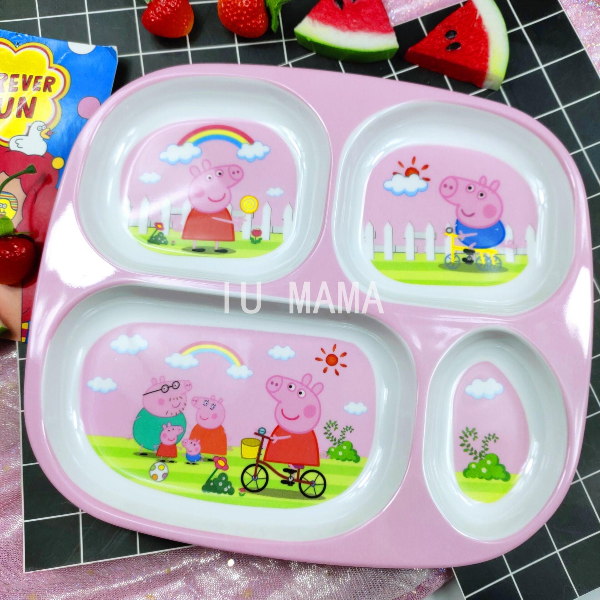Children's Plate Cartoon Cute Baby Compartment Household Shatter-resistant Hello Kitty Plate Spoon Infant Food Supplement Learn to Eat