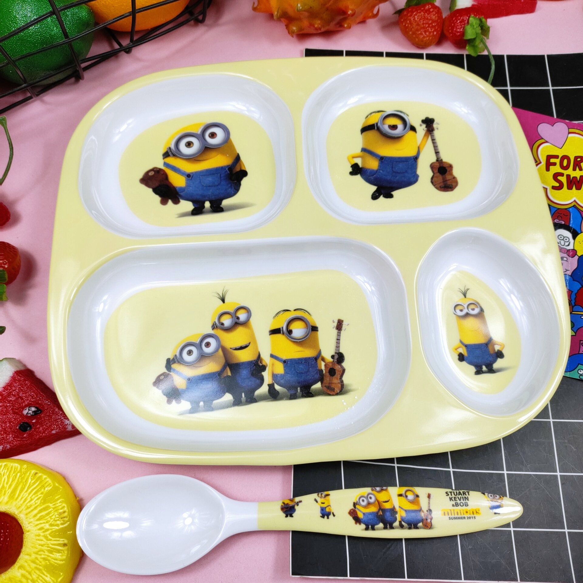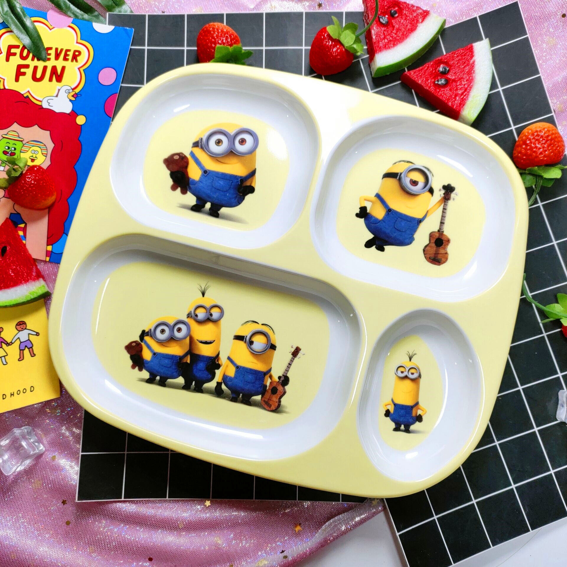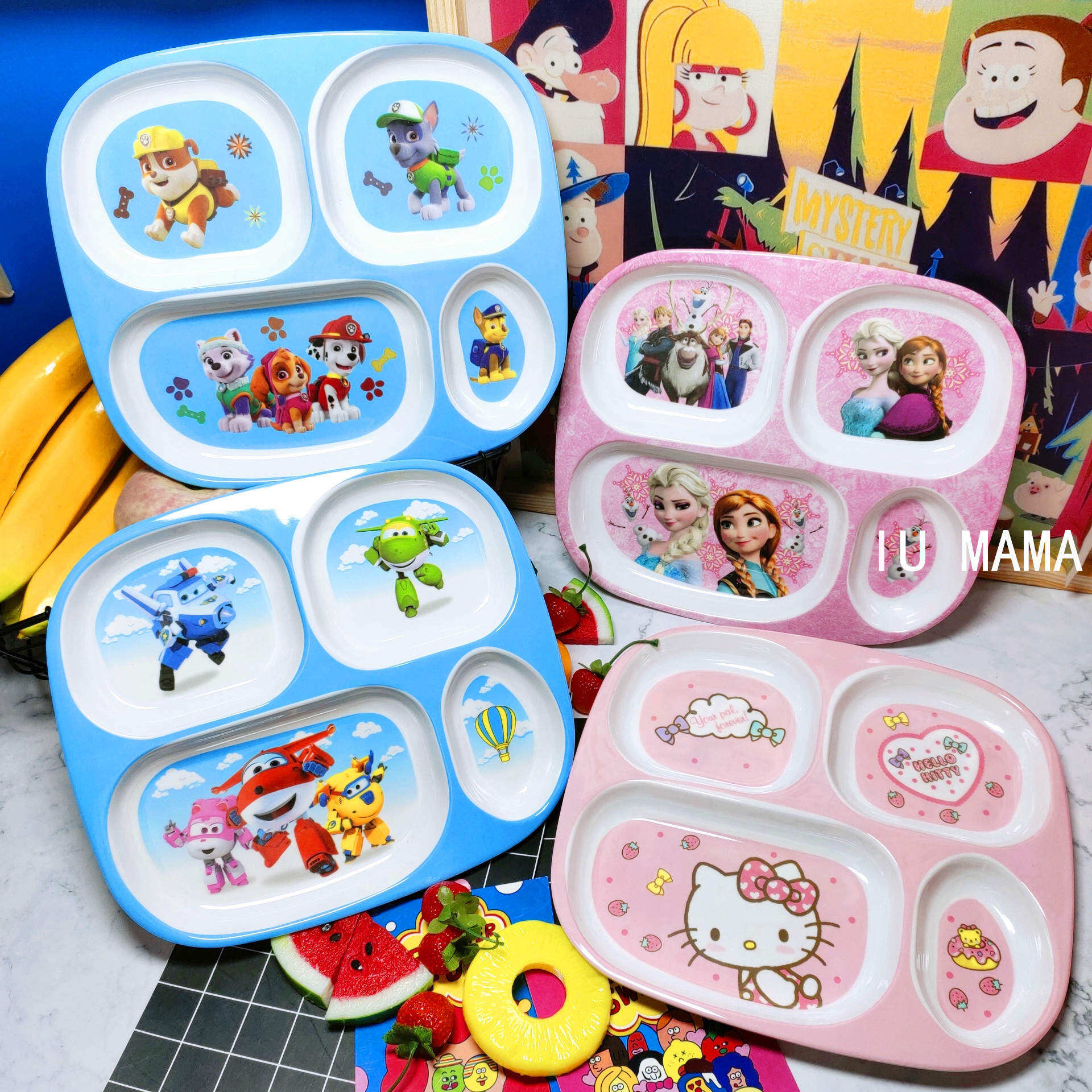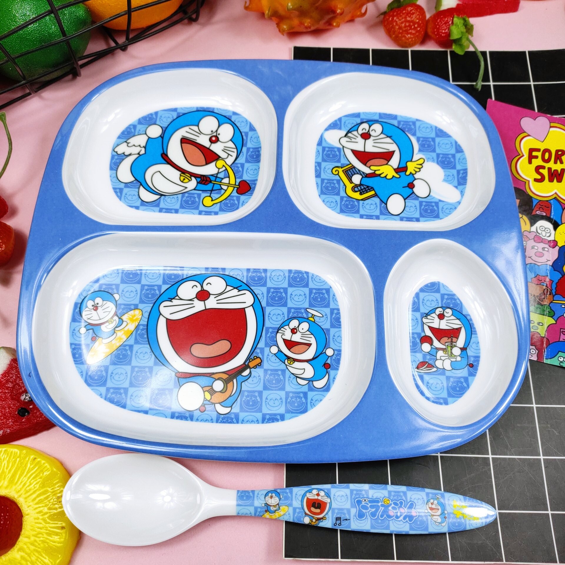 Children's Plate Cartoon Cute Baby Compartment Household Shatter-resistant Hello Kitty Plate Spoon Infant Food Supplement Learn to Eat