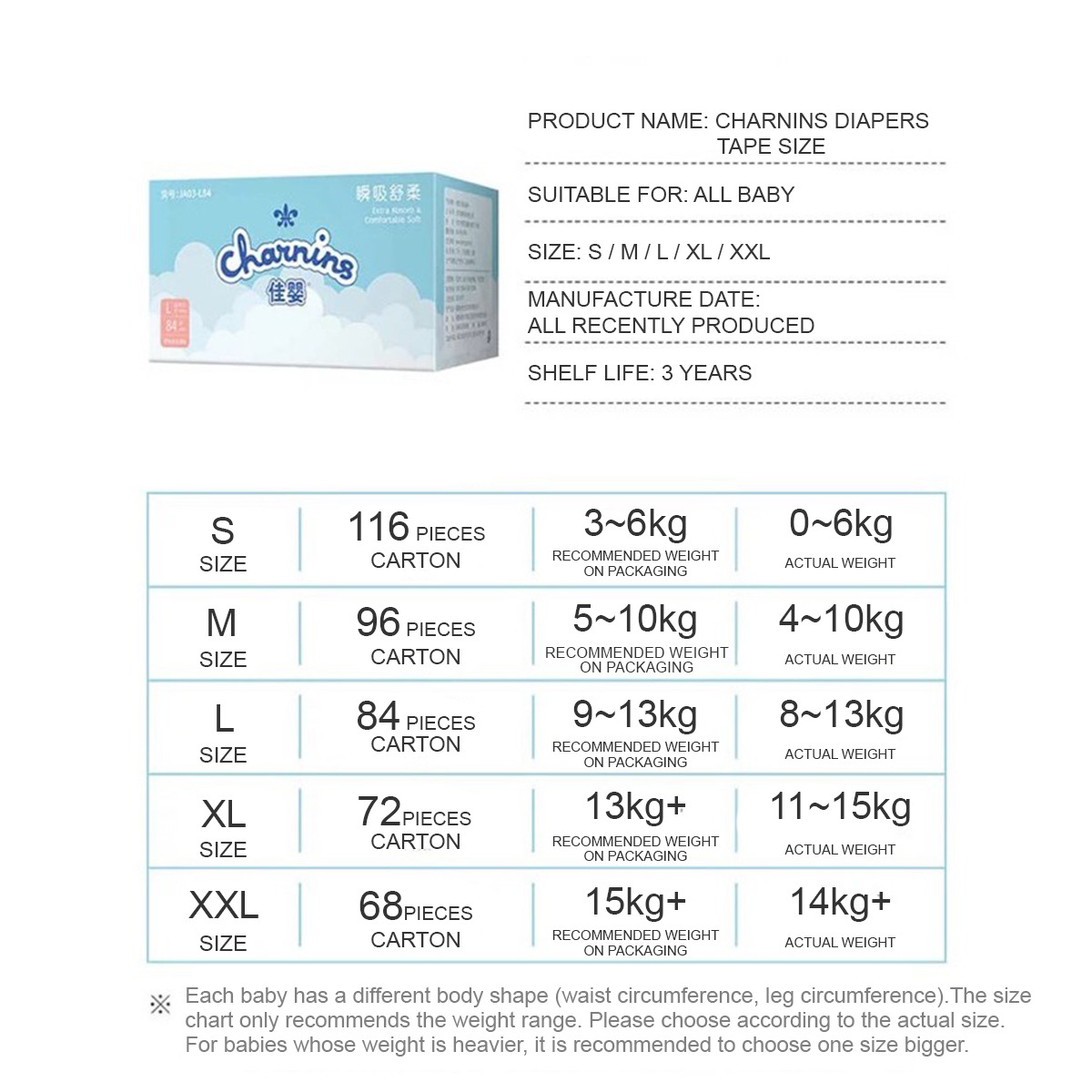 [Ready stock] [Carton Deal]Charnins Tape Diapers carton S/M/L/XL/XXL baby disposable diapers pull up pants