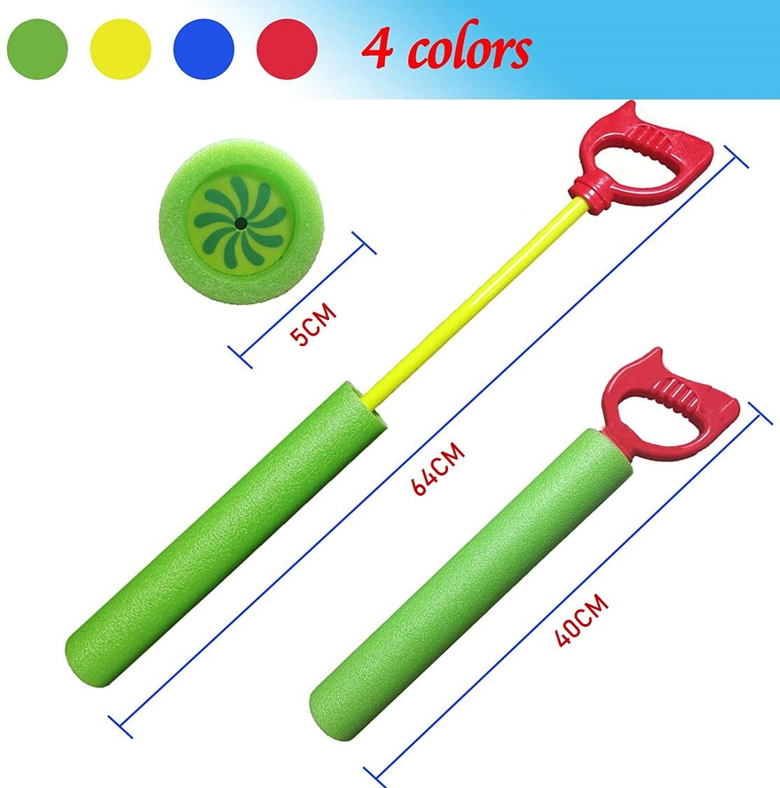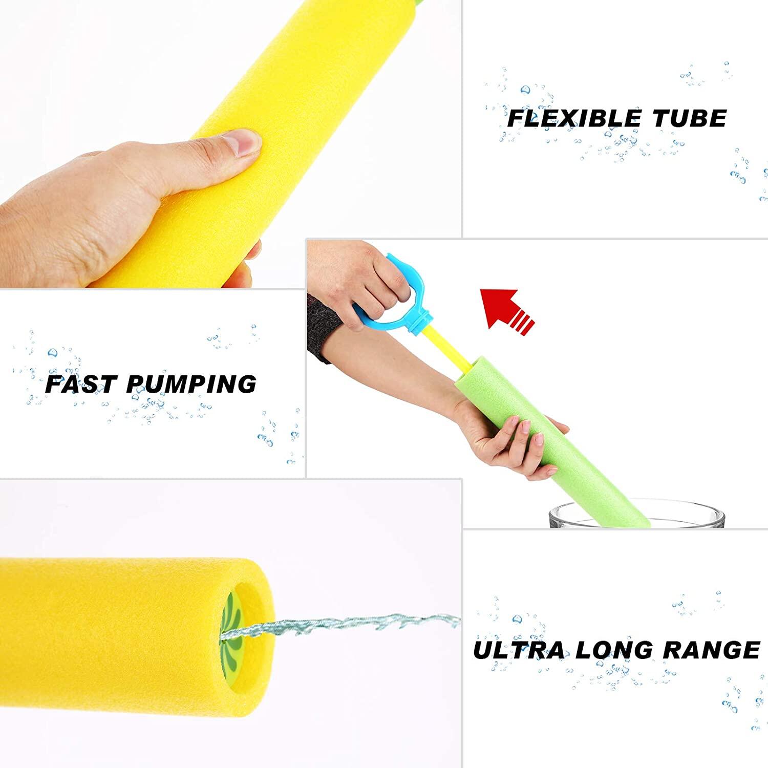 Just put the Foam Water Toy' s head into the water, pull the handle, the water toy barrel will suck in water, when shooting, push the handle to spray the water. It' s easy to use!