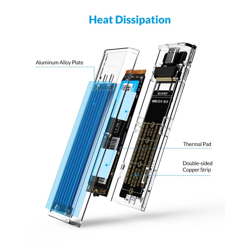 ORICO SSD Enclosure Transparent NVME M.2 to type-c external mobile hard Enclosure(TCM2-C3)
