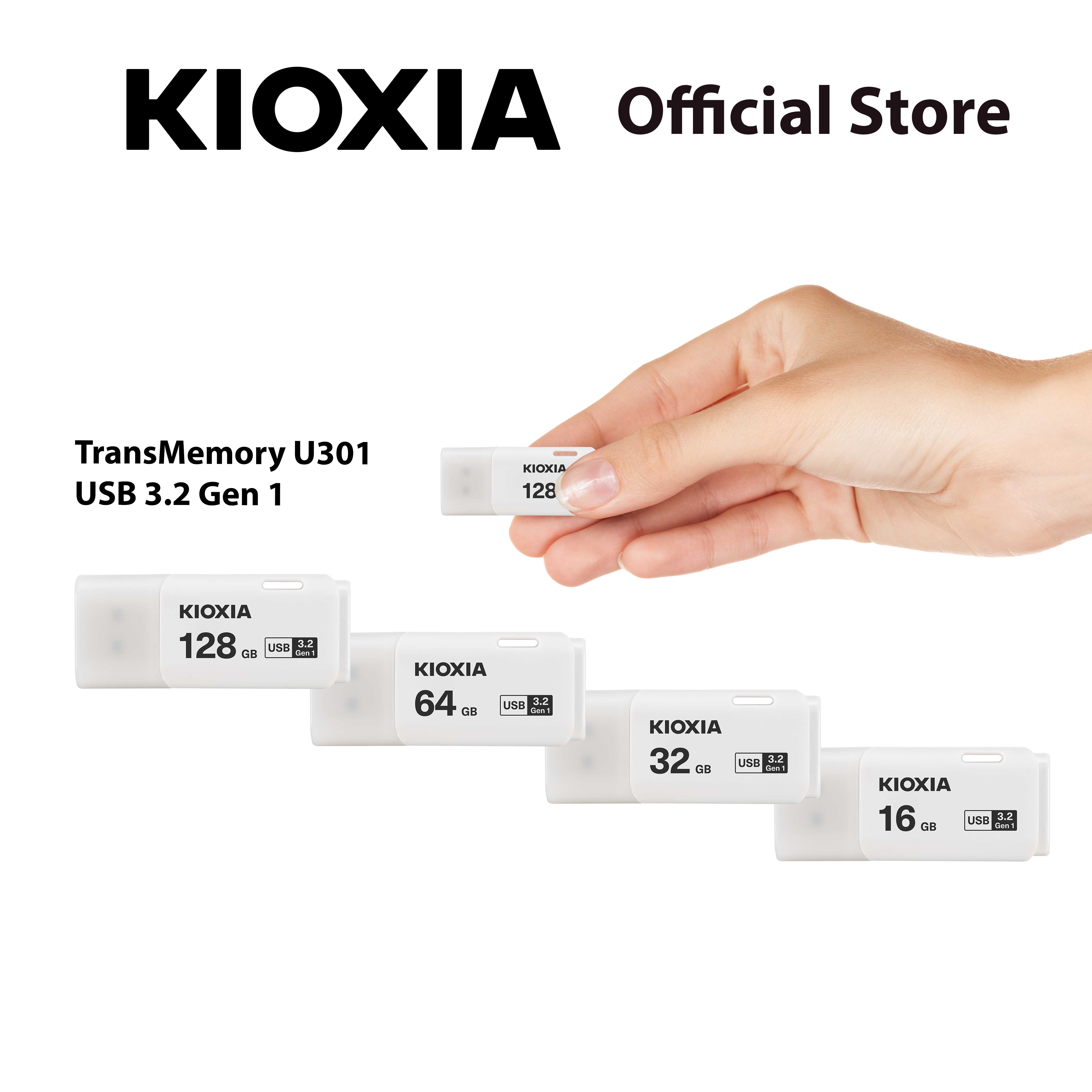 KIOXIA TransMemory U301 USB flash drives make it simple to store your media – with a design that’s small in size, but big on storage, and features USB 3.2 Gen 1 technology. With a range of capacities up to 128GB, you can organize more of your documents and media across various devices.