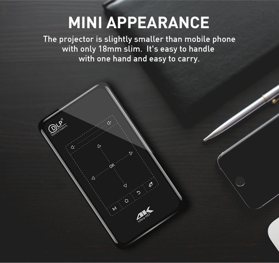 YJMOYE Portable Digital Projector P09-ll Mini 4K1080P Bluetooth Smart WiFi Wireless Charged Projectors for Home or Outdoor Theater, Entertainment