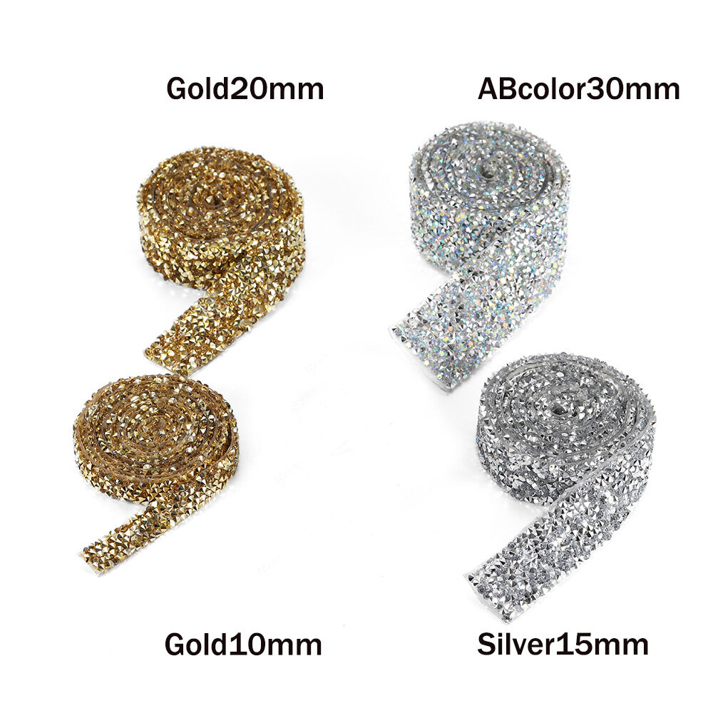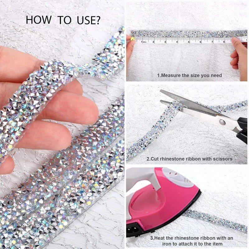 1 Yard 1.0-3.0mm Rhinestones Tape Banding Hotfix Strass Crystal Decoration Rhinestone Ribbon For DIY Woman Clothing Shoes Hats