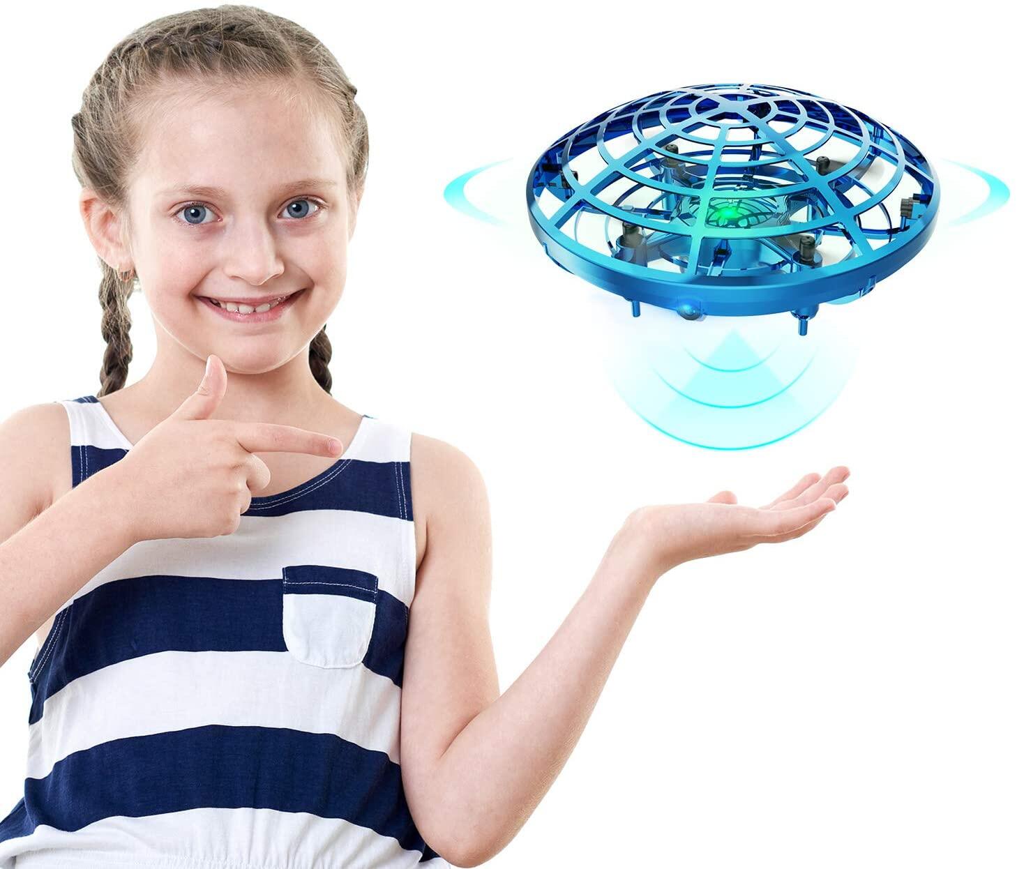 Cute Stone DEERC Mini 360°Rotating Smart Auto Sensing Hovering UFO Flying Toy Drones Hand Gesture Control Motion Sensor Helicopter With LED Light USB Charge Flying Ball Toys for Boys and Girls