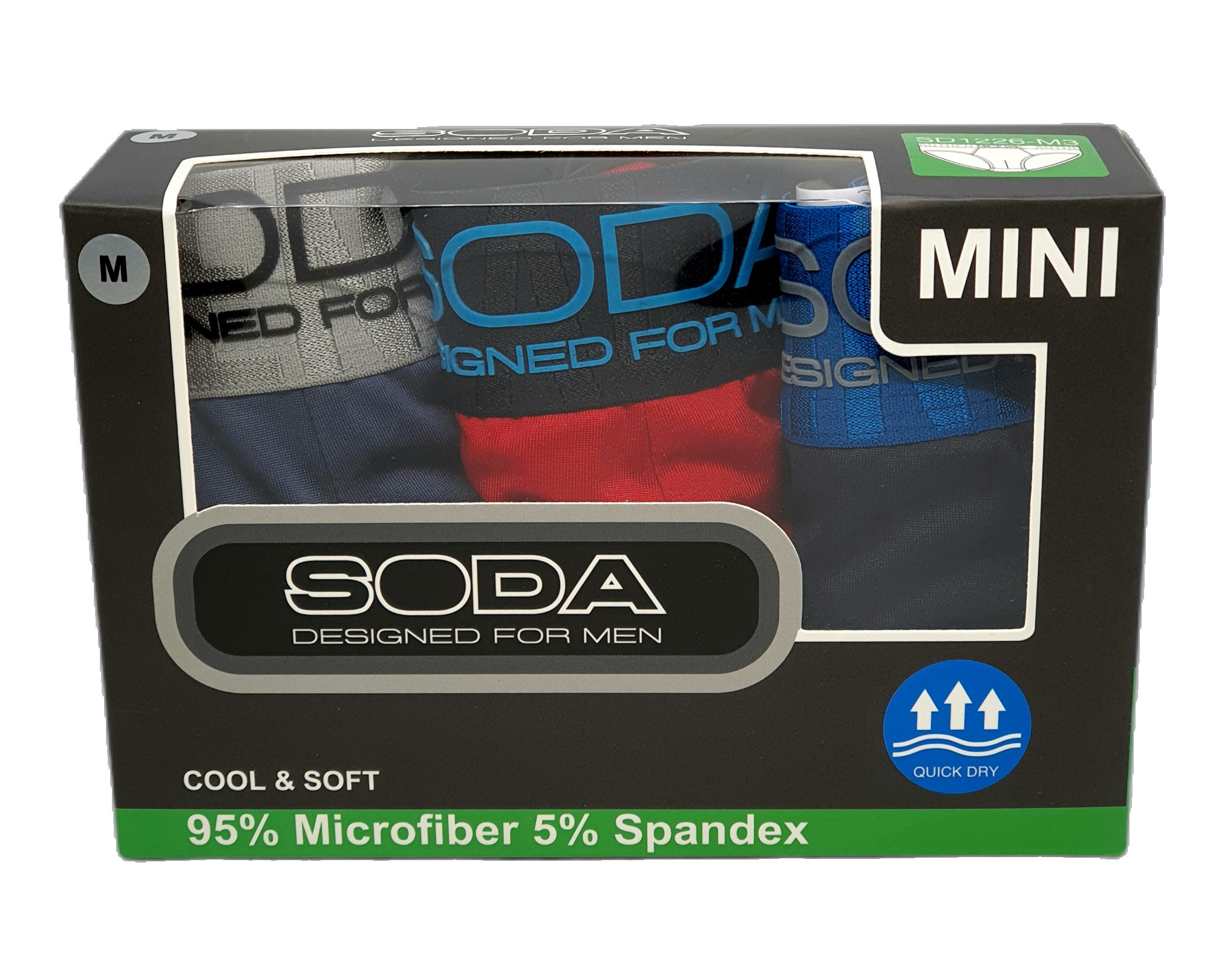 SODA Men Underwear 3 Piece-Pack Microfiber Quick Dry Mini Briefs with Waist Band