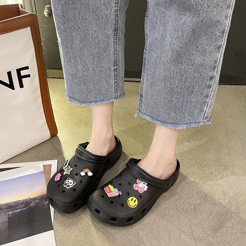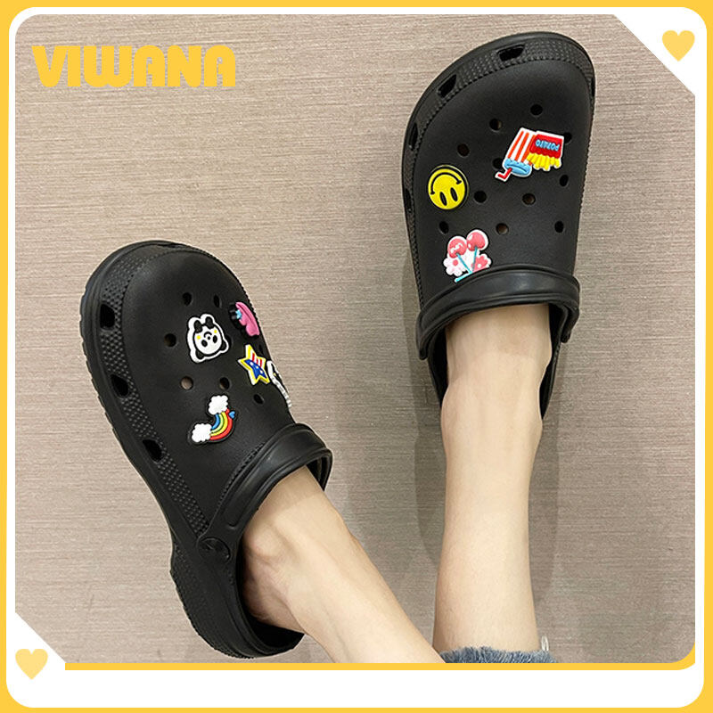 VIWANA Unisex Sandals For Women Men Plus Size 44 Summer Beach Slippers Korean Style Black White Slip On Clogs Women Croc Shoes For Women On Sale