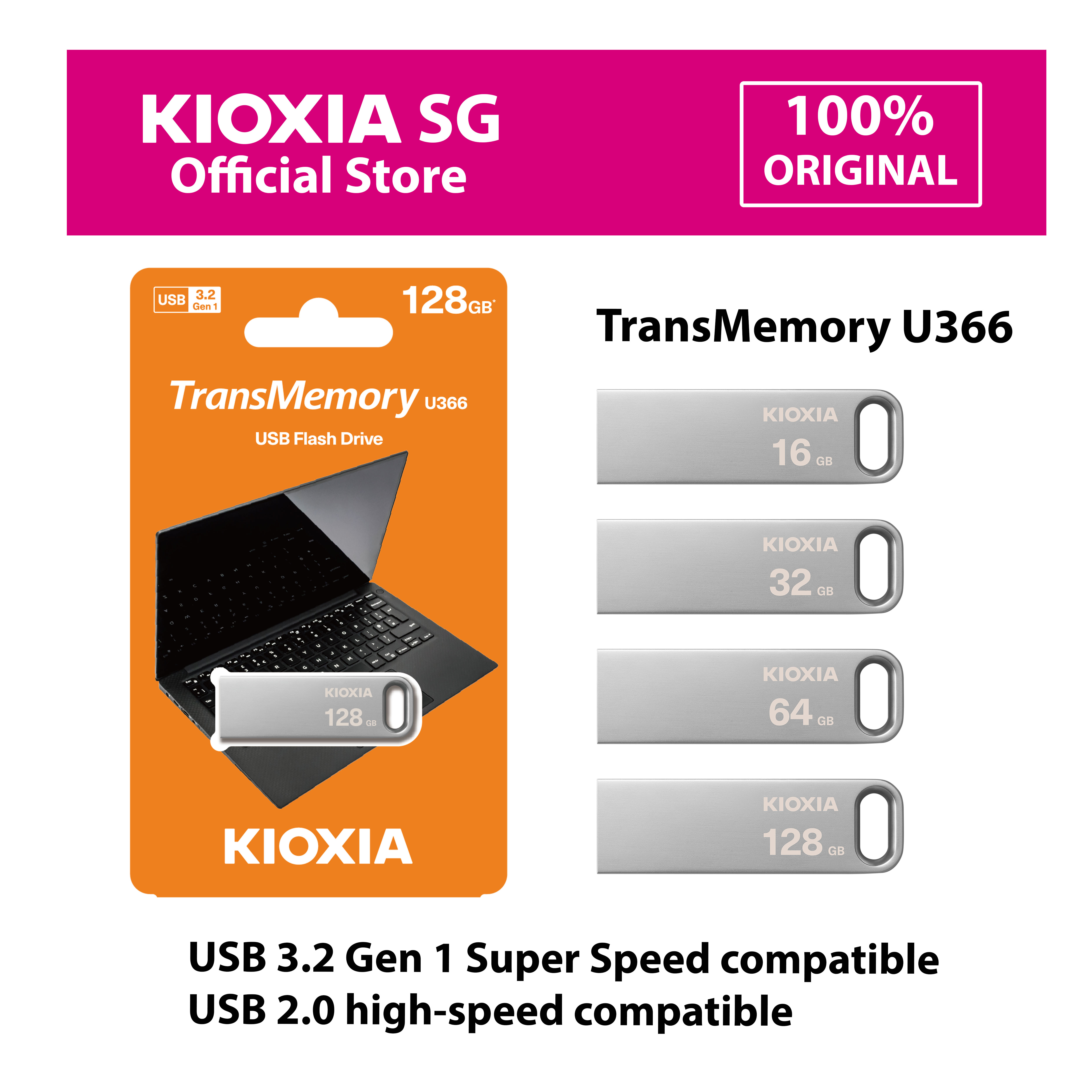 KIOXIA TransMemory U366 USB 3.2 Flash Drive in 16GB | 32GB | 64GB | 128GB Thumbdrive - from JAPAN **FREE USB-C Adapter Per Order**