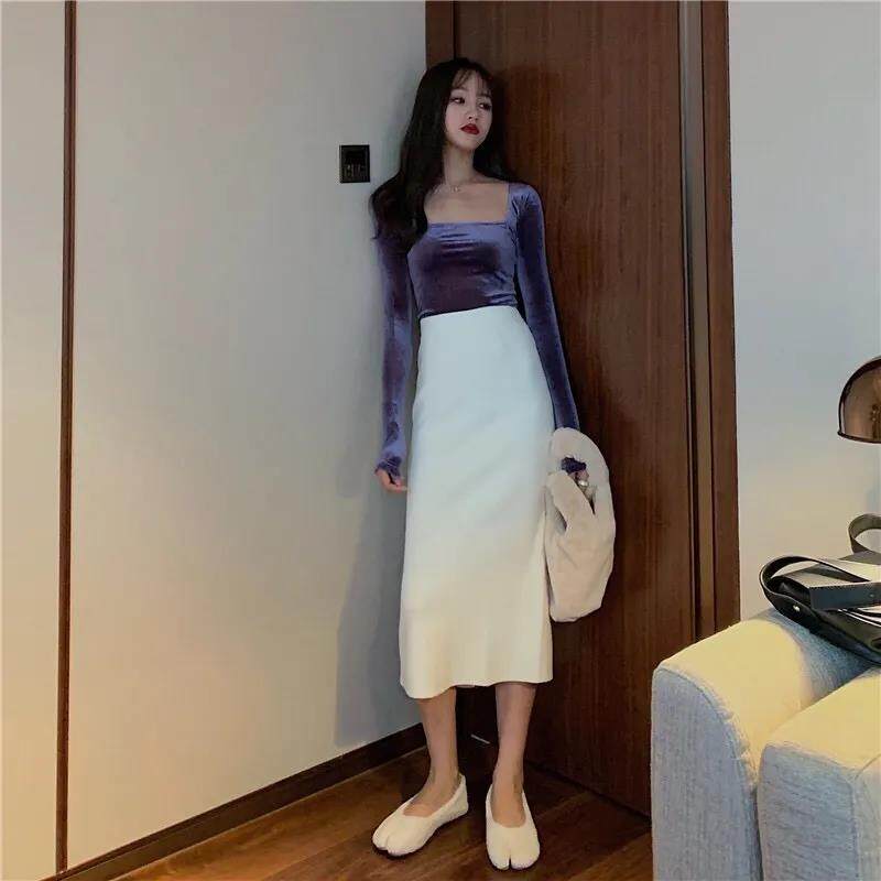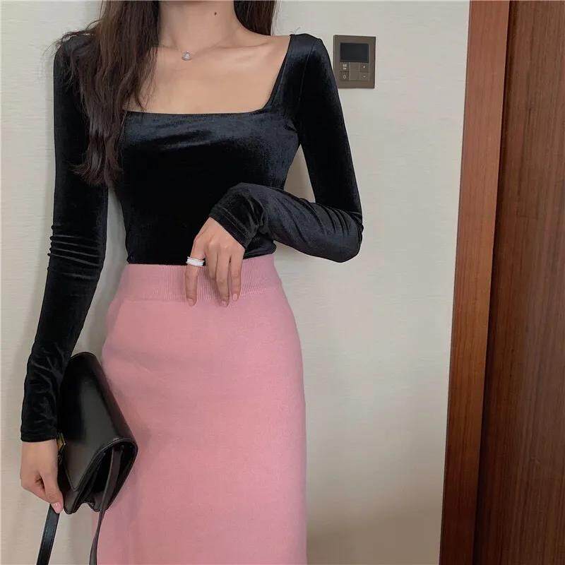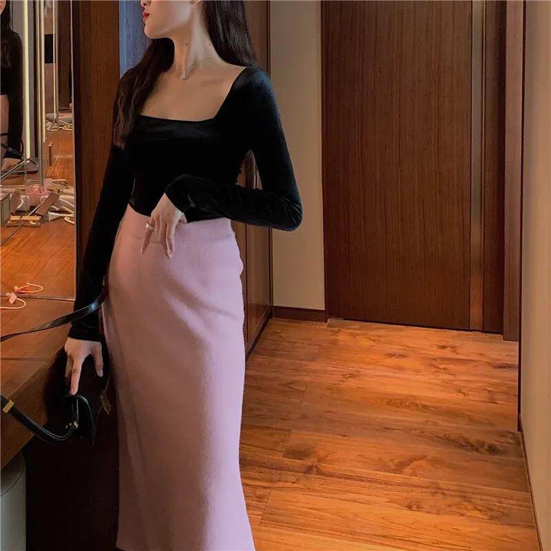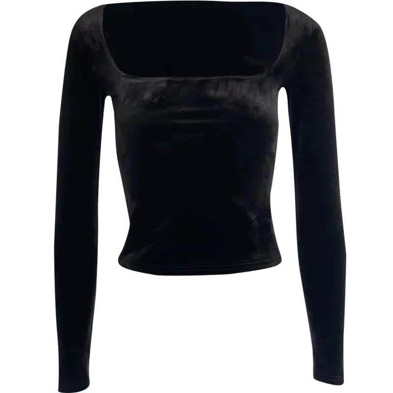 EDQRDQ Womens Vintage Velvet Long Sleeve Square Neck T Shirts Tops Tees
