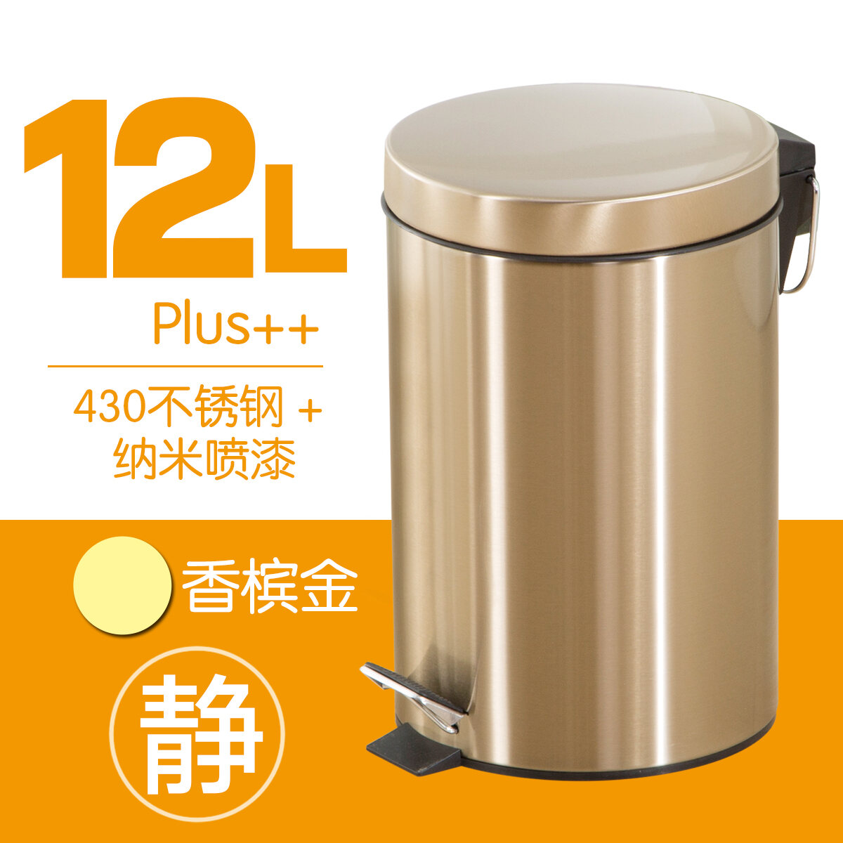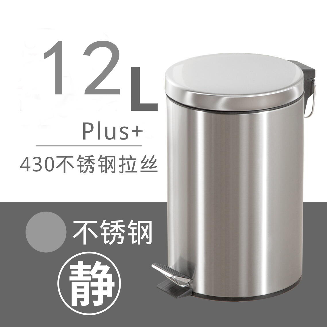 Trash Can Household Shanghai Wet and Dry Japanese Style Living Room Kitchen Stainless Steel Bathroom Pedal Trash Can Mute
