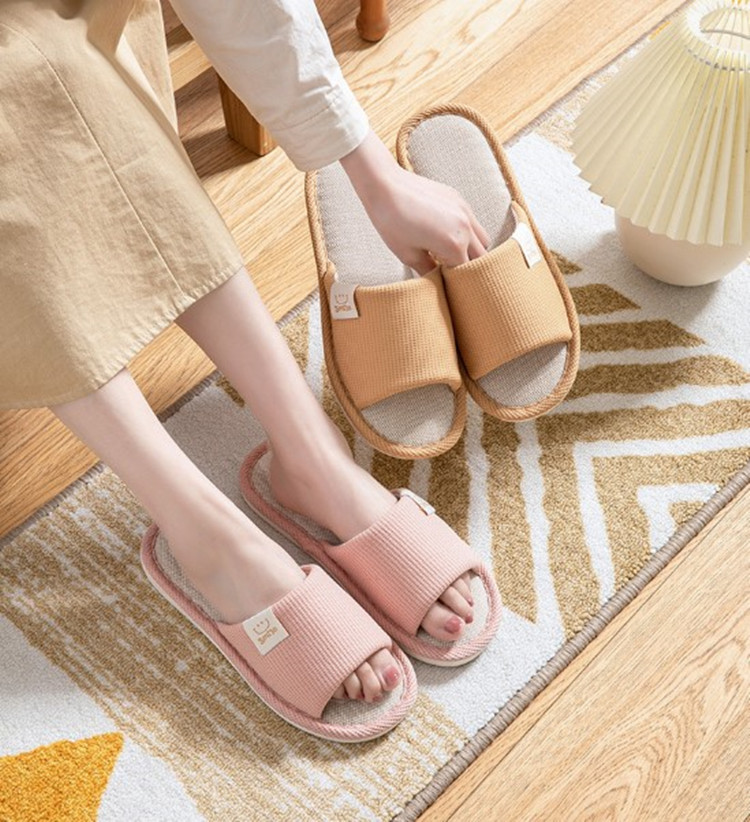Home slippers New Four Seasons Linen Slippers Home Fashion Men and Women Cotton Linen Indoor Couples Korean Soft Sole Slippers Comfortable and High-grade Sweat-absorbing Material