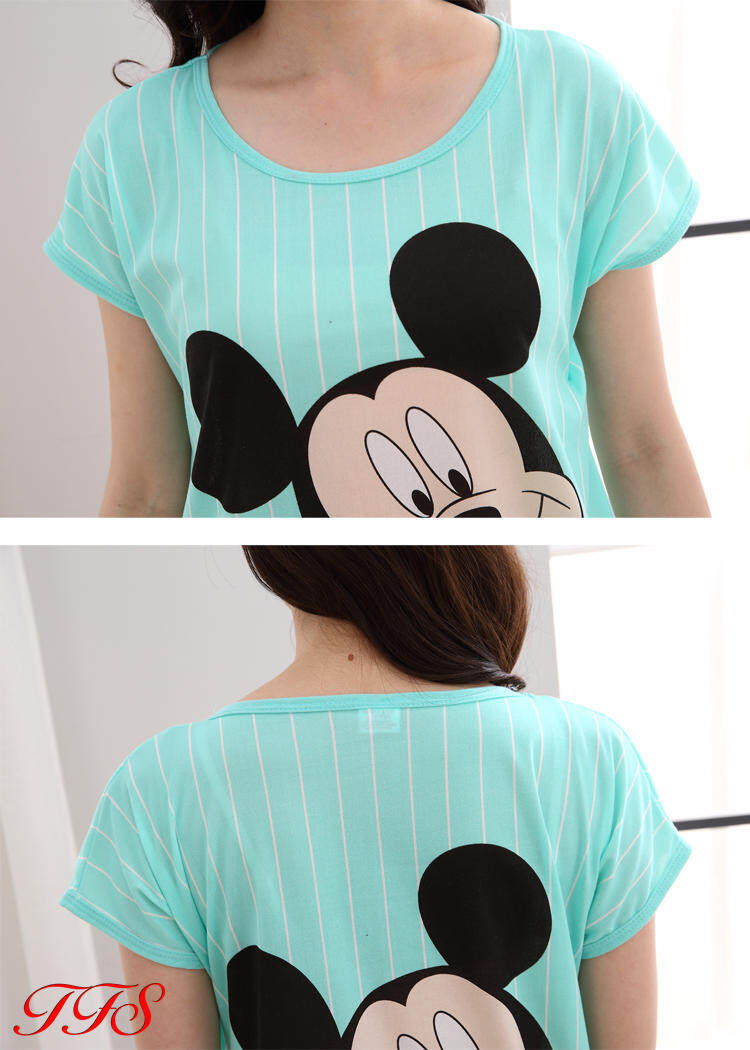 TFS Sleepwear for Women Short Sleeve Sleepwear Women Sleeping Dress Thin Cartoon Silk Pajamas Women