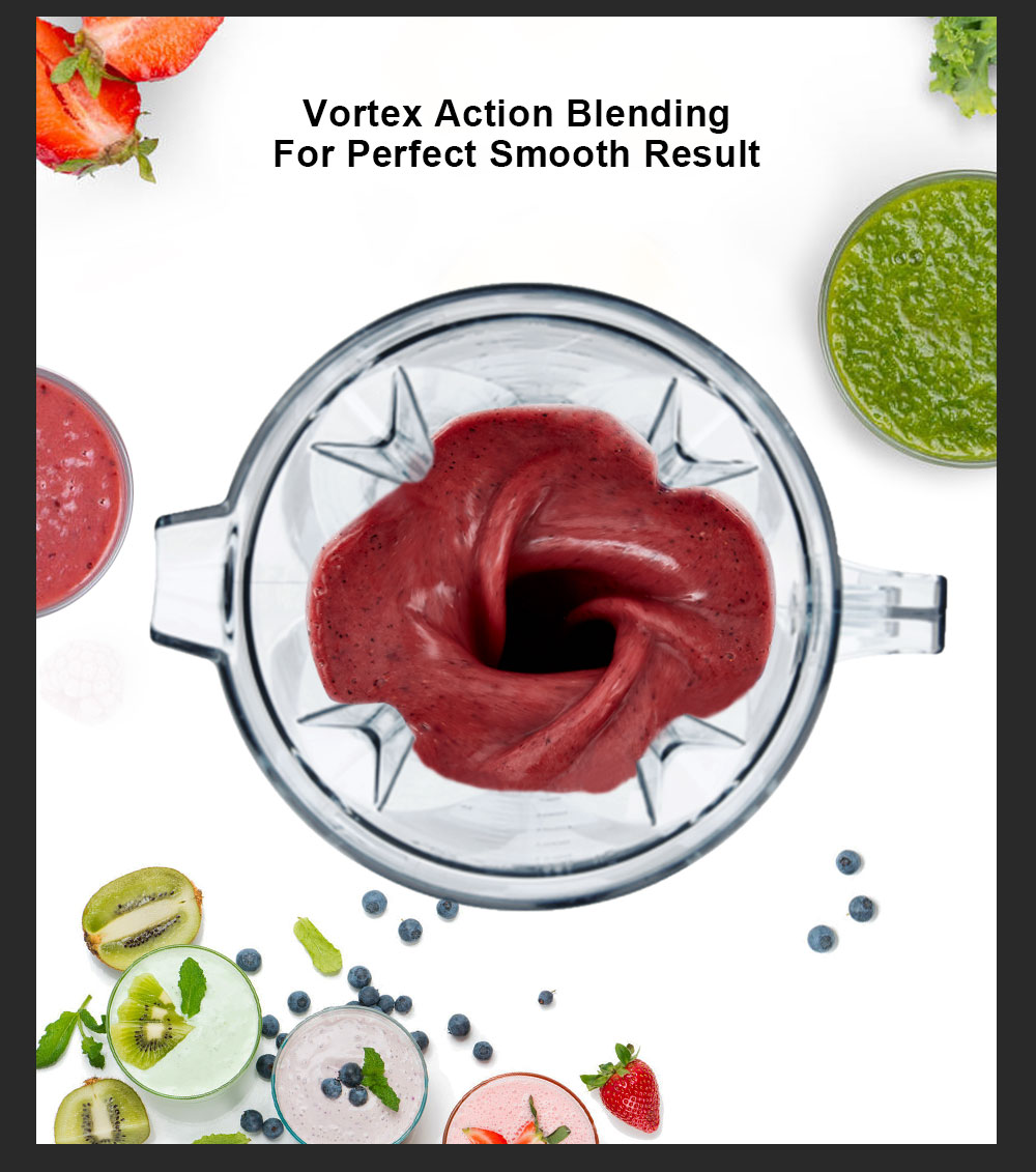 : The peak 2200W (rated 1500W) commercial-grade motor with hardened 6 stainless steel can easily break ice cubes and frozen fruits, it makes the large ice cube to small slush. Benefit from the WHOLE food by thoroughly pulverizing the ice cubes, frozen fruits, vegetables, seeds, nuts and much more.Variable Speed Control & Pulse Feature